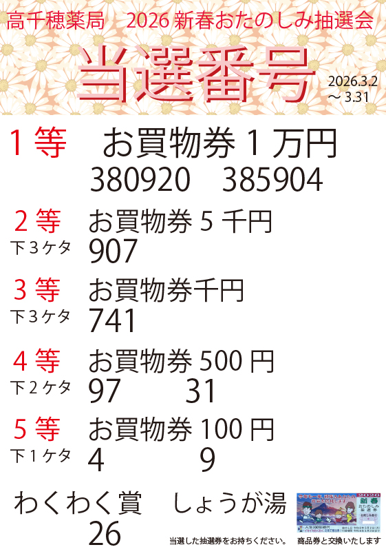 【2026春季おたのしみ抽選券当選番号発表】